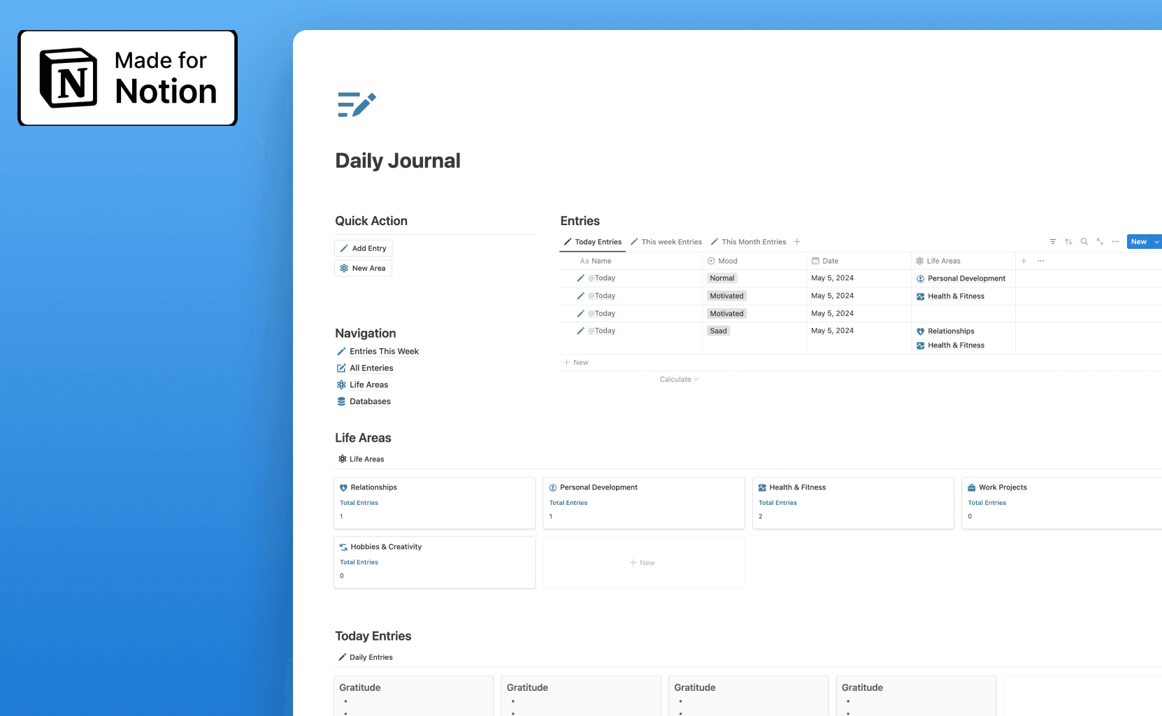 Reflect on your day, express your thoughts, and track your progress with this daily journal template.