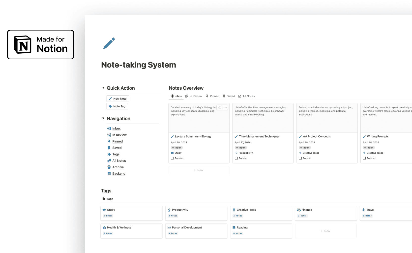 Capture and organize your notes, ideas, and research effectively with this robust note-taking system.