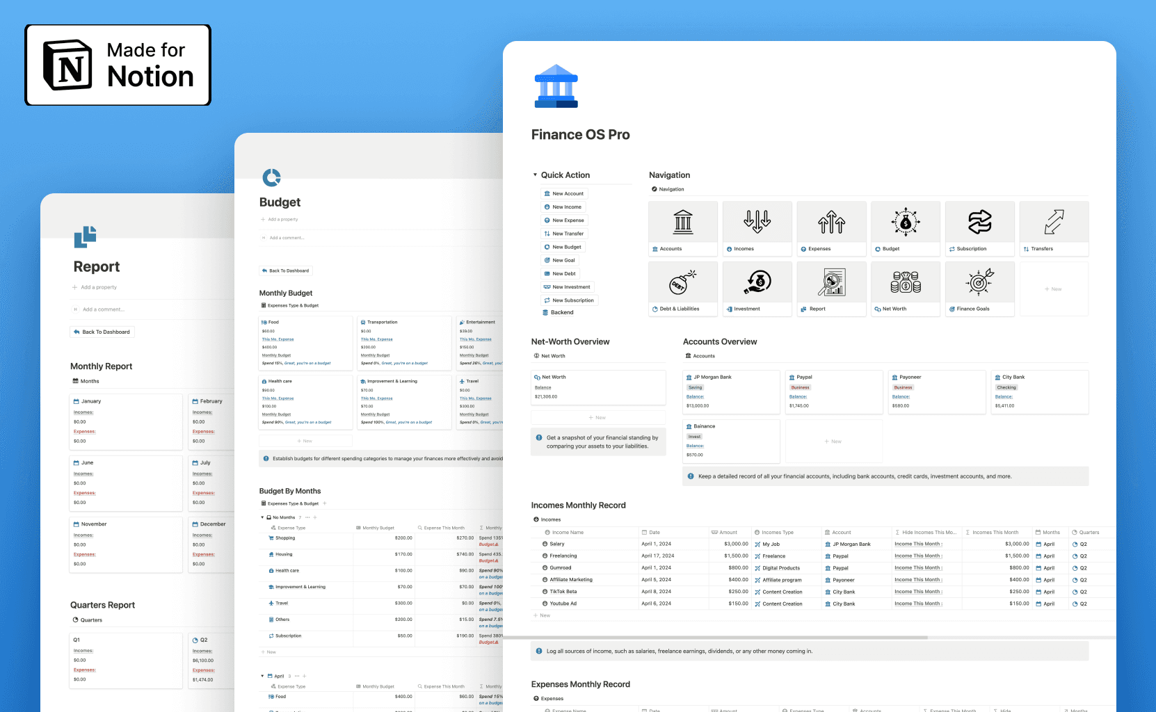 Take control of your finances with this comprehensive template. Track your income, expenses, investments, and net worth all in one place.