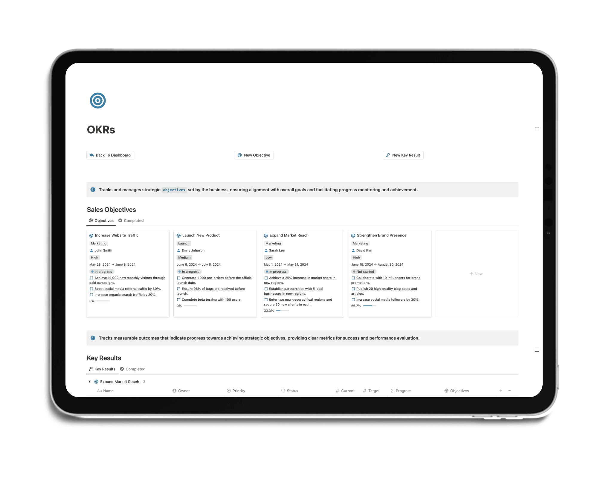 Set clear objectives and track measurable key results to drive your business forward with focus and alignment.