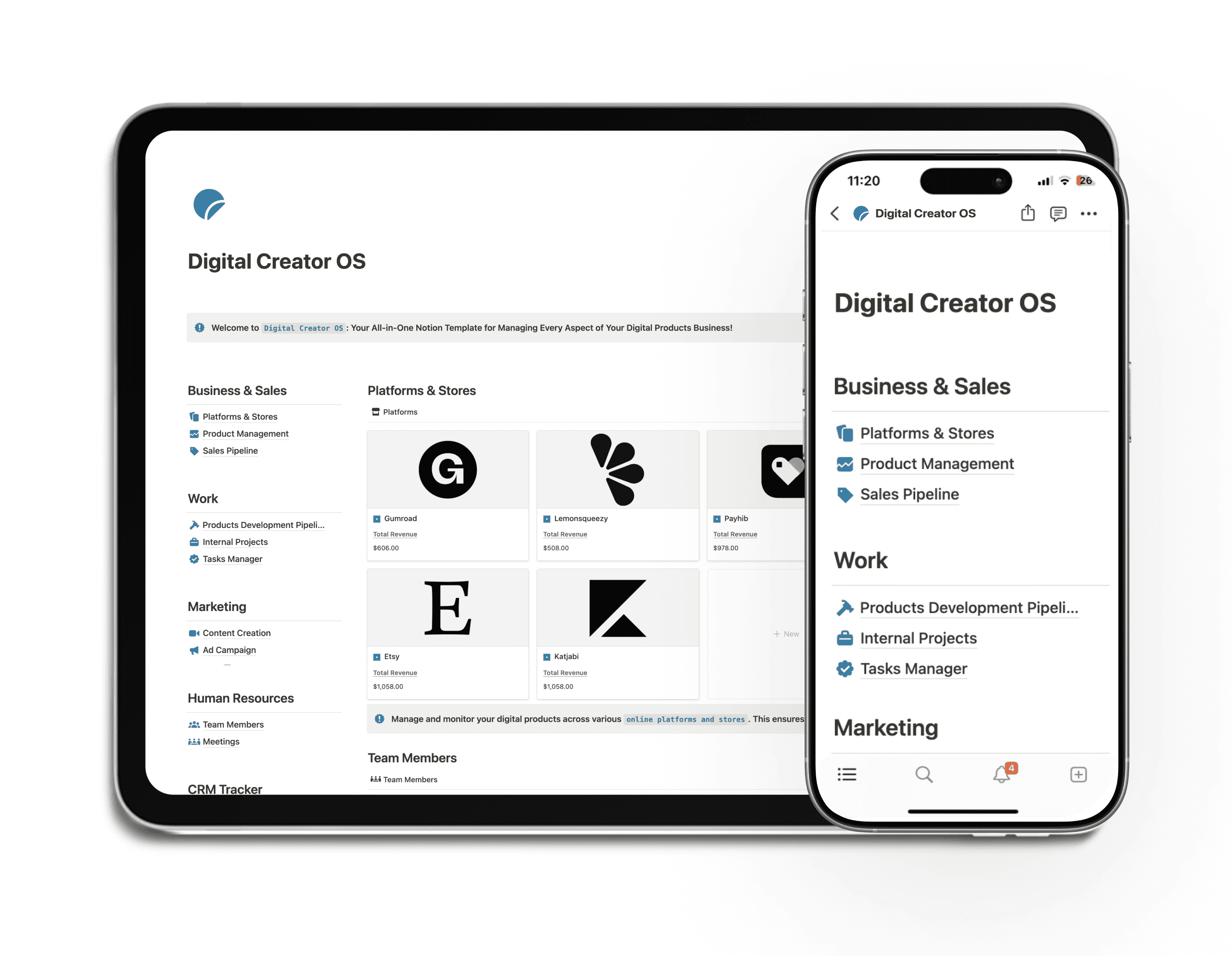 Streamline your workflows, enhance productivity, and manage every aspect of your digital products business. With the Digital Products Business OS, everything—sales, product management, campaigns, finances, and more—is seamlessly organized for effortless growth and success.