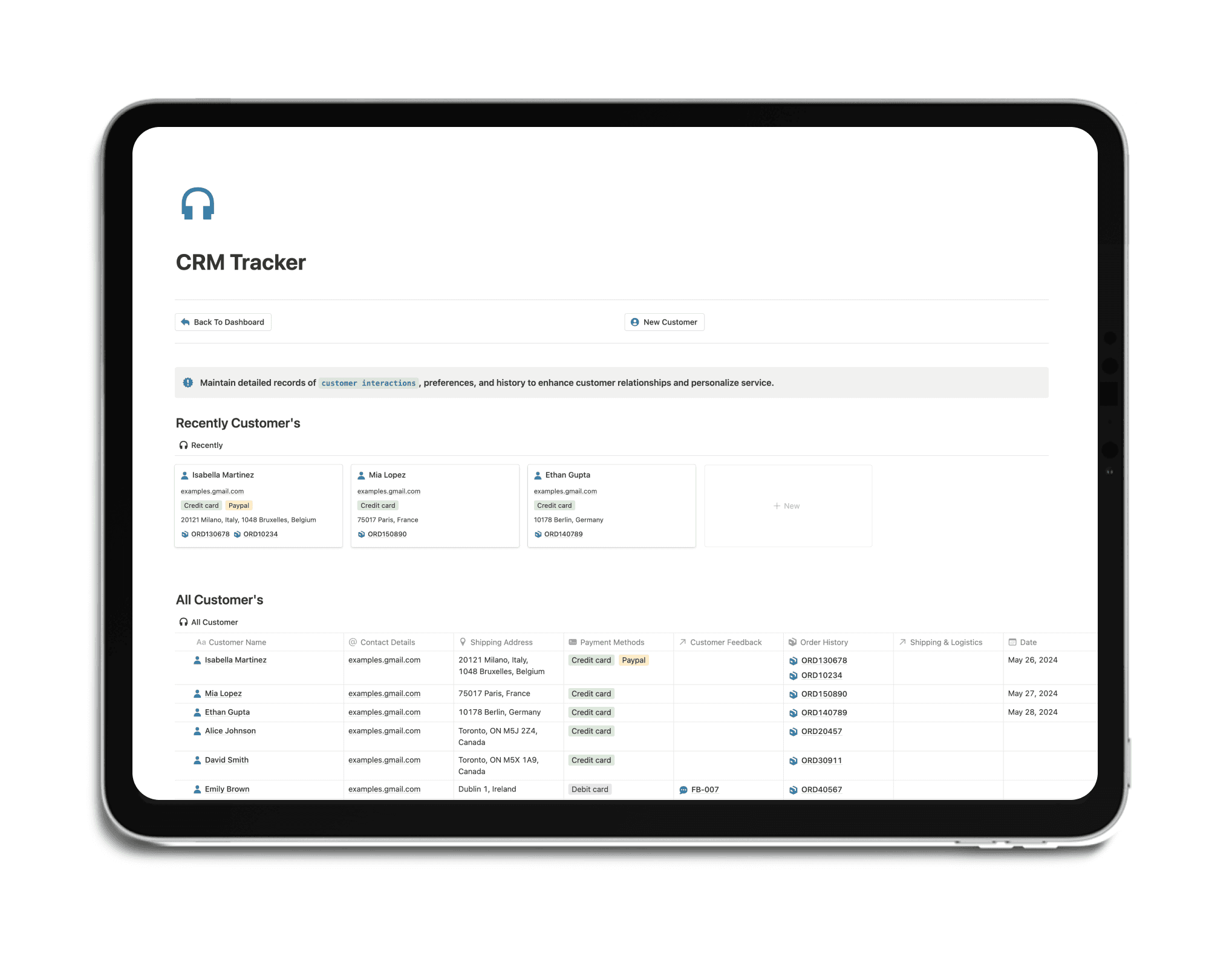Build strong customer relationships by tracking interactions, feedback, and communication history all in one place.