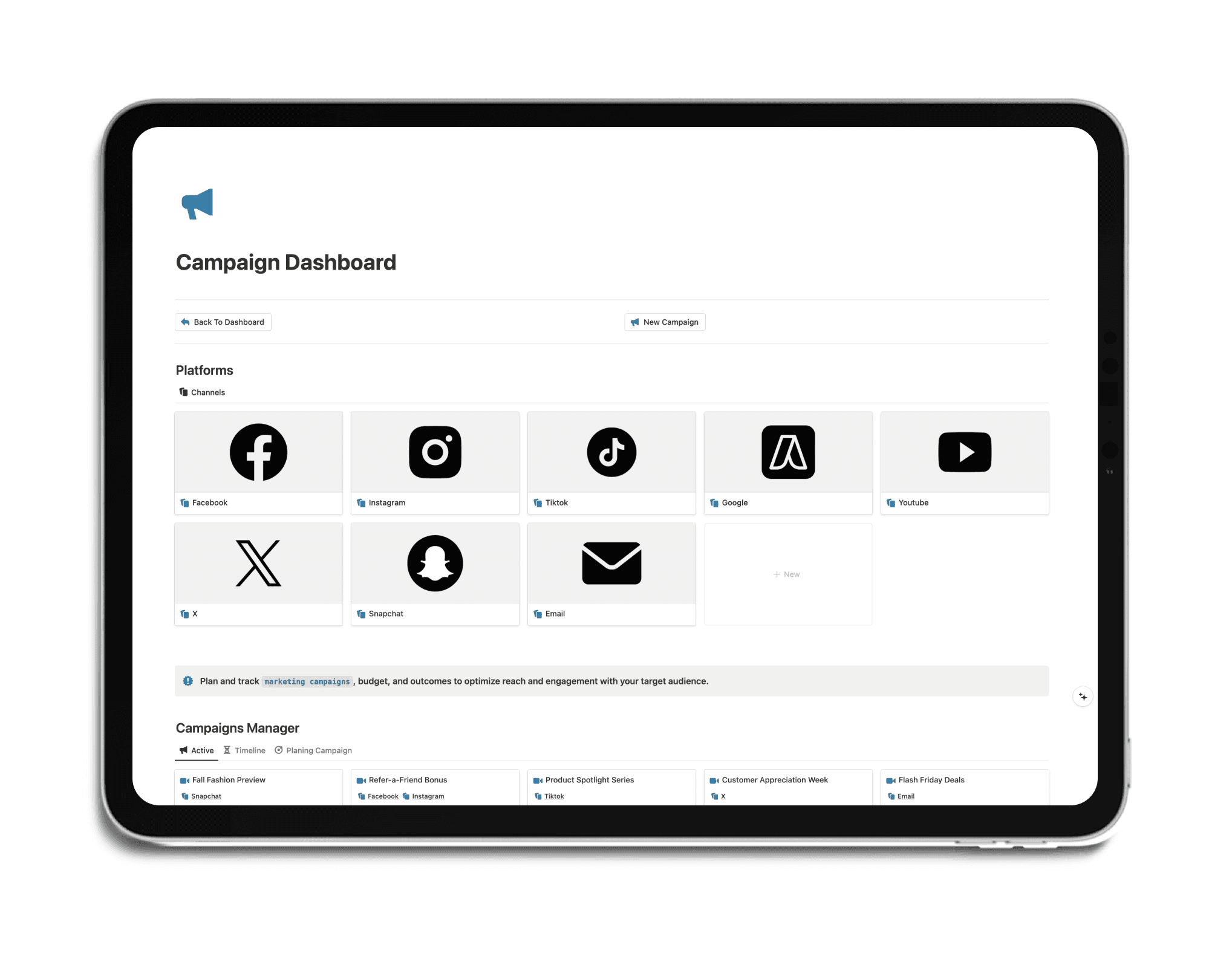 Simplify your workflows, enhance productivity, and manage your entire business from one place. With the E-Commerce Business OS, everything you need—orders, inventory, campaigns, and finances—is seamlessly organized for ultimate efficiency and growth.