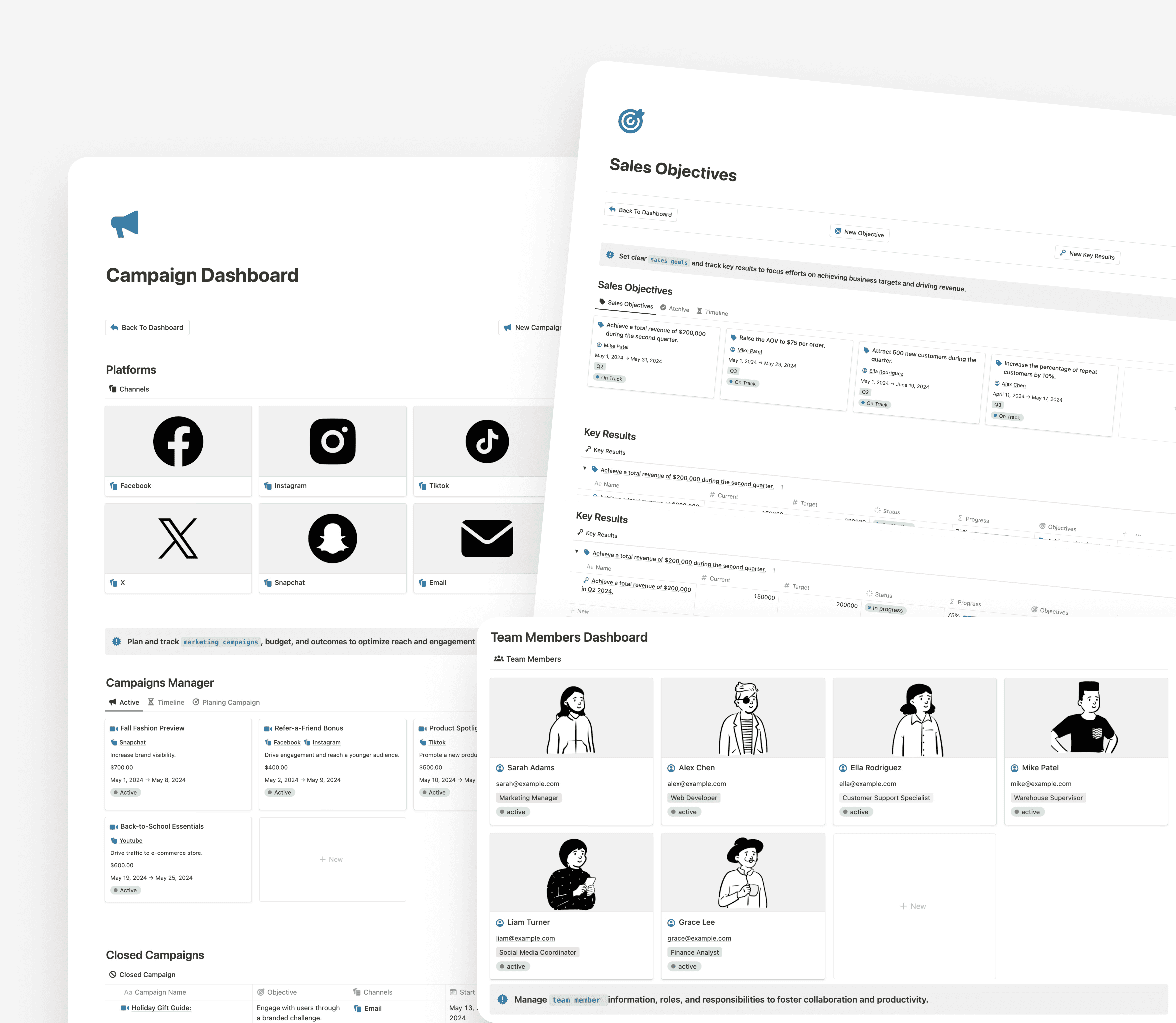 Plan impactful campaigns, monitor team performance, and achieve sales objectives with clear goals and actionable insights. Align your efforts to scale your business effectively.
