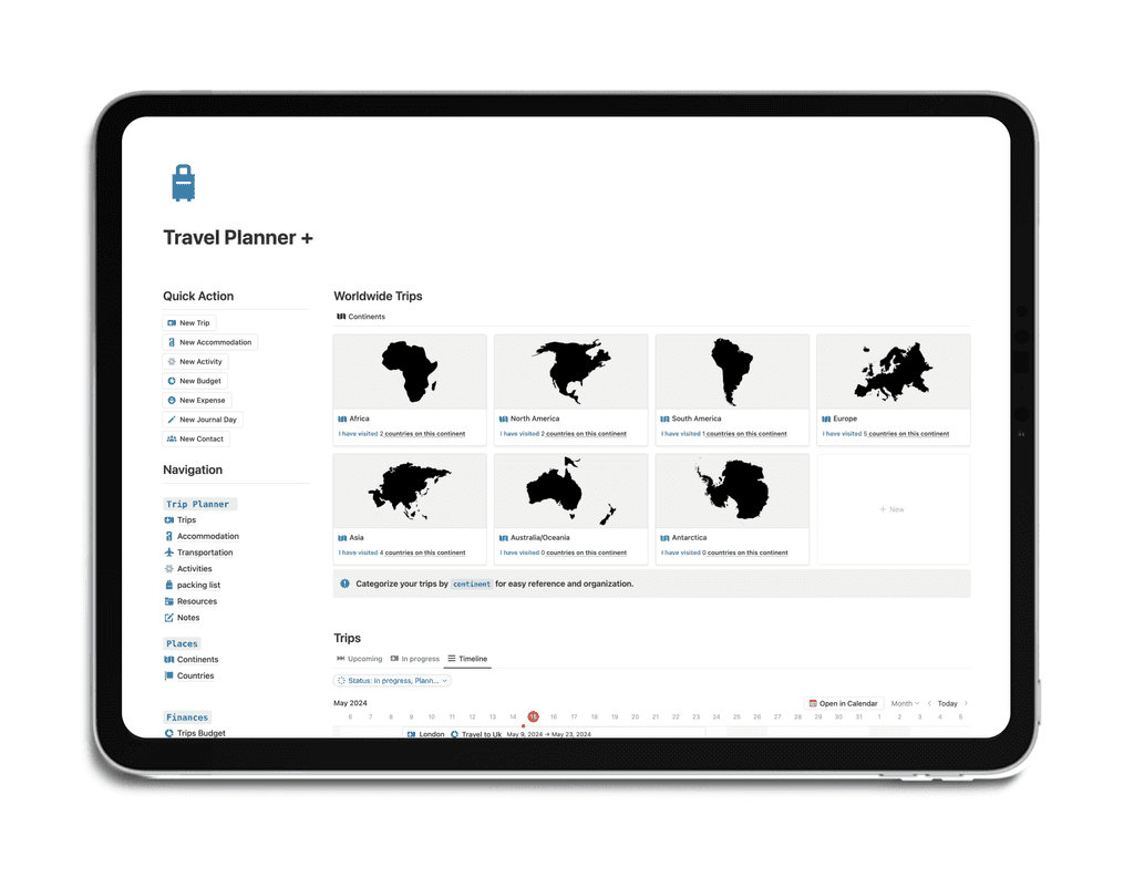 Organize your adventures with itineraries, packing lists, and travel goals in one easy-to-access hub.