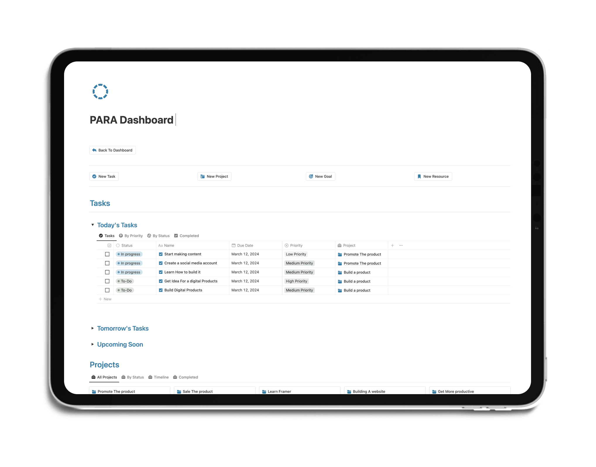 Great template that brings the P.A.R.A. method to life in Notion. It offers a practical, visual way to organize your world and stay productive.