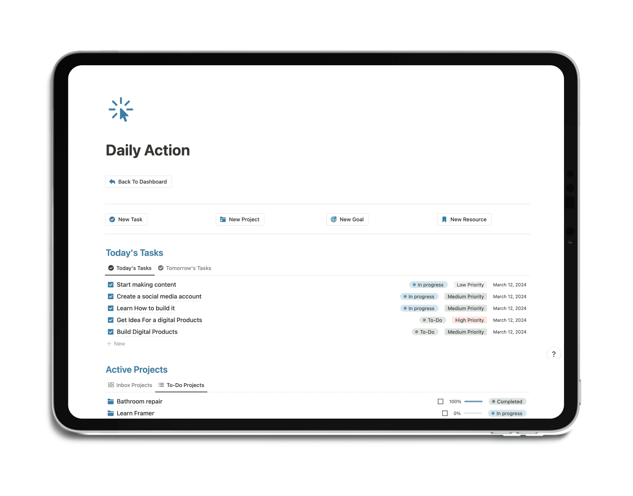 This template has completely transformed how I manage my tasks and goals. The dashboards are intuitive, and the integration between sections keeps everything connected. Highly recommend it!