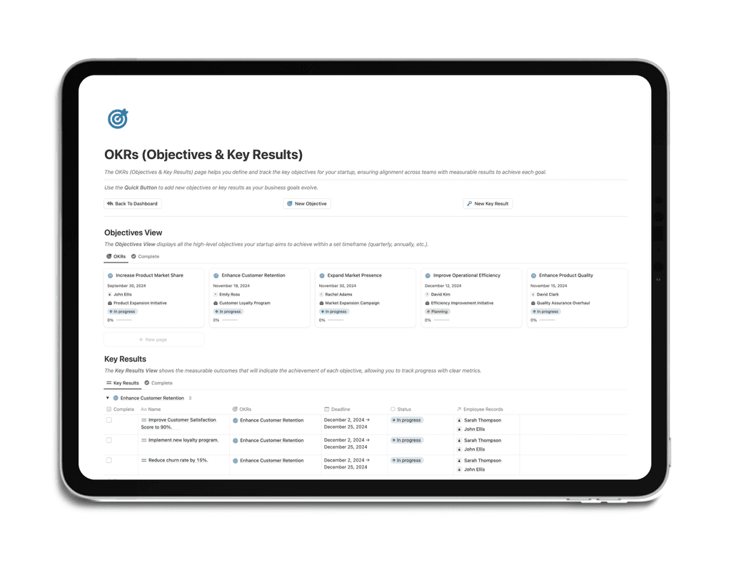 Centralize your startup operations with key tools and insights, designed to keep your team aligned and your goals clear.