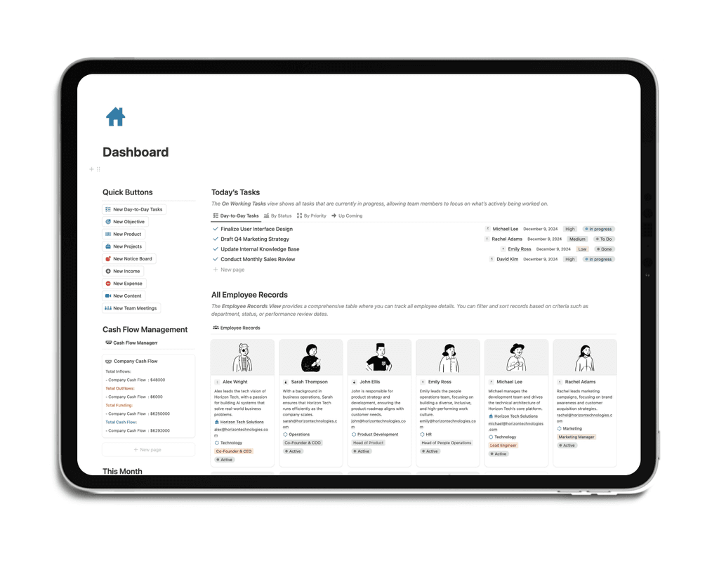 A centralized knowledge hub to document your startup’s structure, policies, and leadership for streamlined operations.